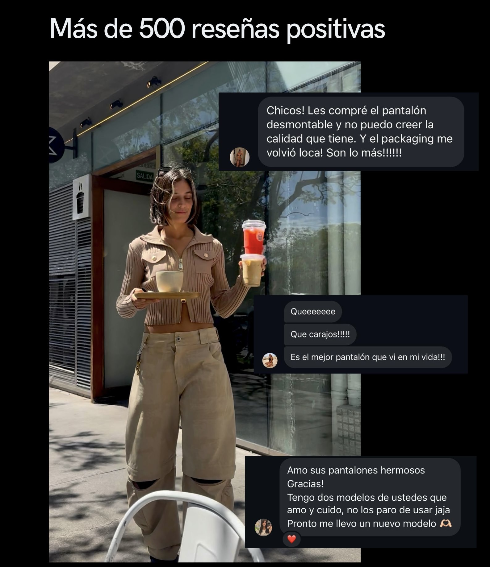 El pantalón tiene un diseño desmontable hecho en gabardina color beige, con una estampa grabada a láser exclusiva de CONSTANT. El pantalonsouski se convierte en bermuda gracias a los cierres que tiene a la altura de las rodillas.