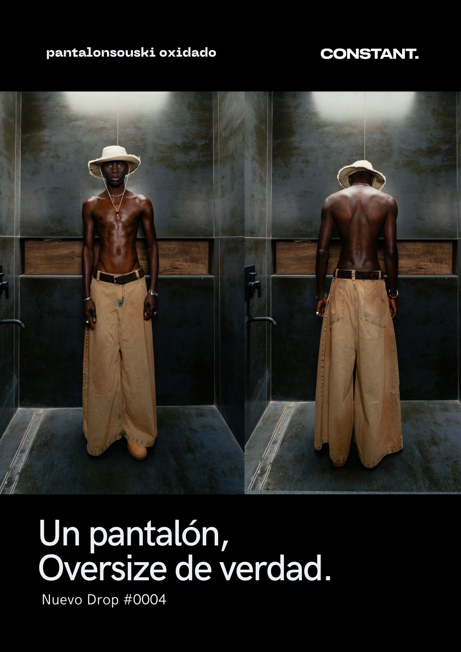 Pantalón oversize de denim 100% algodón con tratamiento de lavado artesanal.