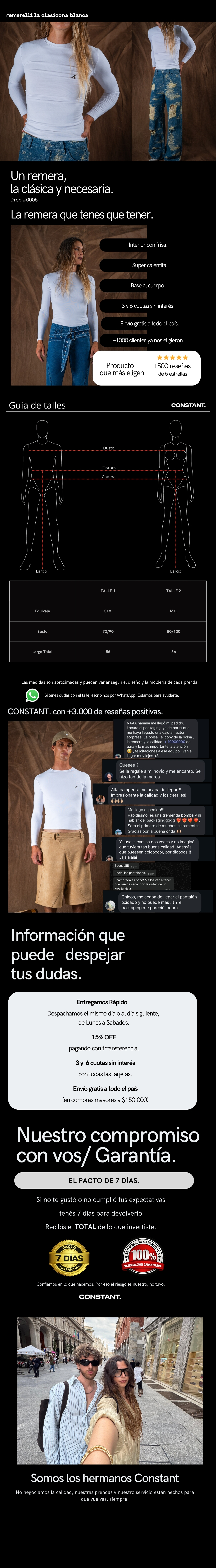 Remera de algodón premium frisado, muy suave por dentro y por fuera, con cuello redondo y manga larga. Corte regular.