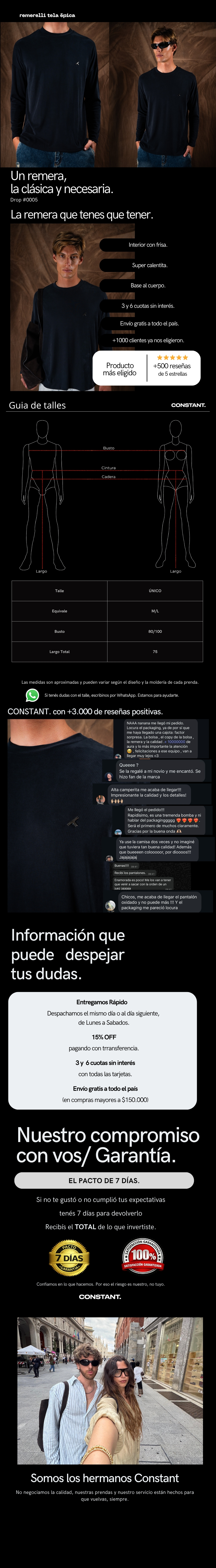 Remera premium, con cuello redondo, manga larga, corte regular.